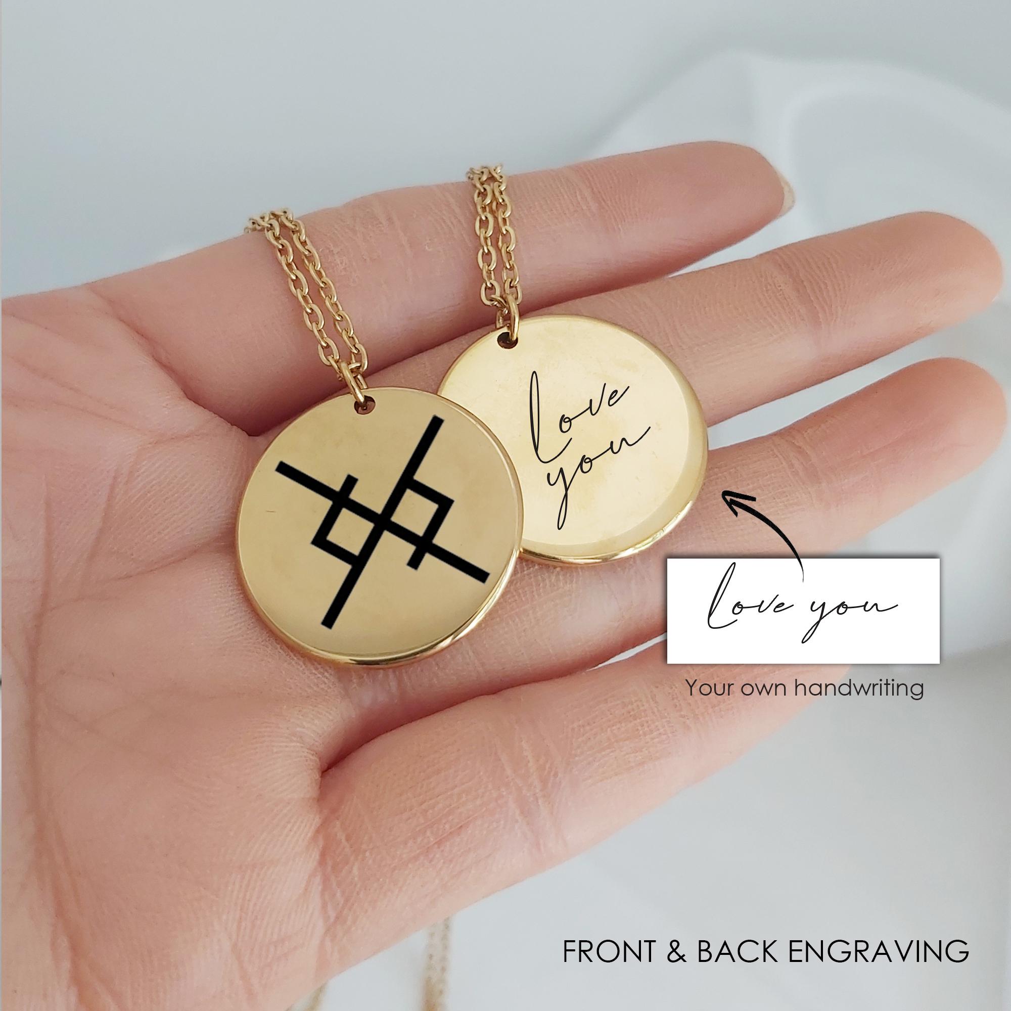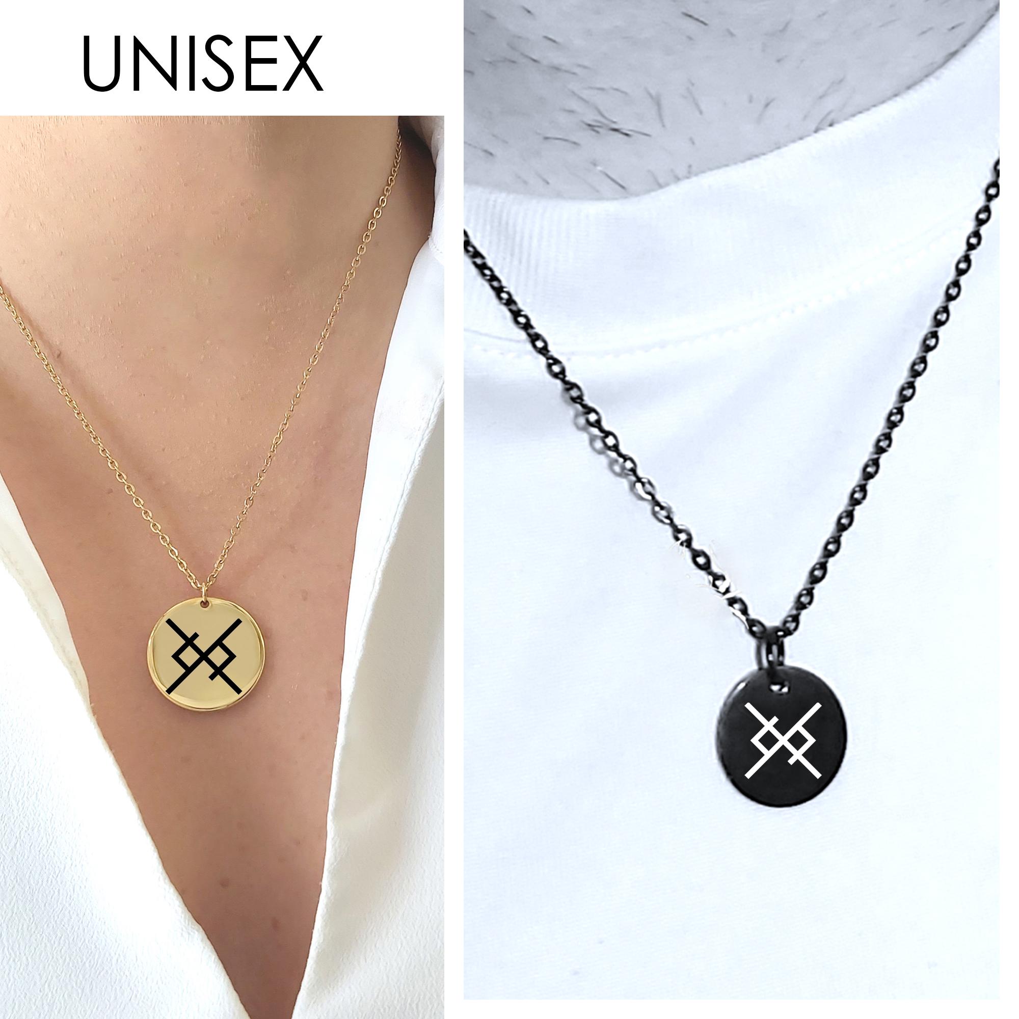 Unisex Minimalist Personalized viking runes necklace. This coin necklace is made of stainless steel and it measures 0.8" /20mm and has a polished finish. The pendant comes with and adjustable stainless steel (18-20") chain that will fit just perfect on any body type.