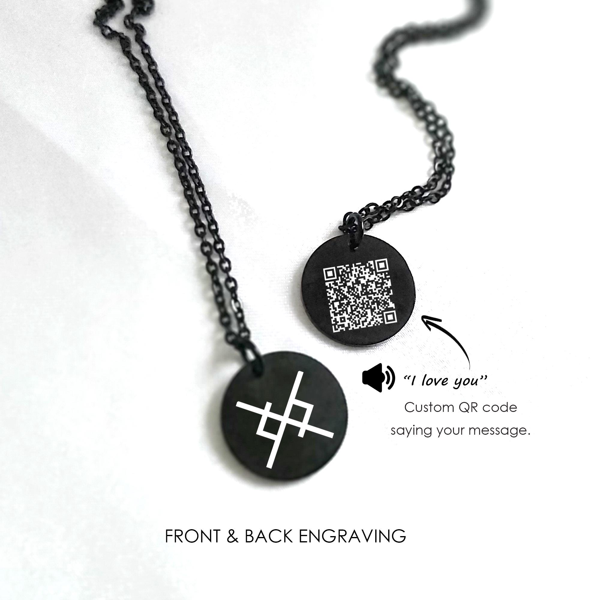 This keepsake can be engraved on the front with the eternal love viking symbol , and the back side can be engraved with short messages on any language, your own handwriting, or a QR code with your voice recording or video, the receiver can scan the QR code with their phone and listen/watch the video or audio file.
