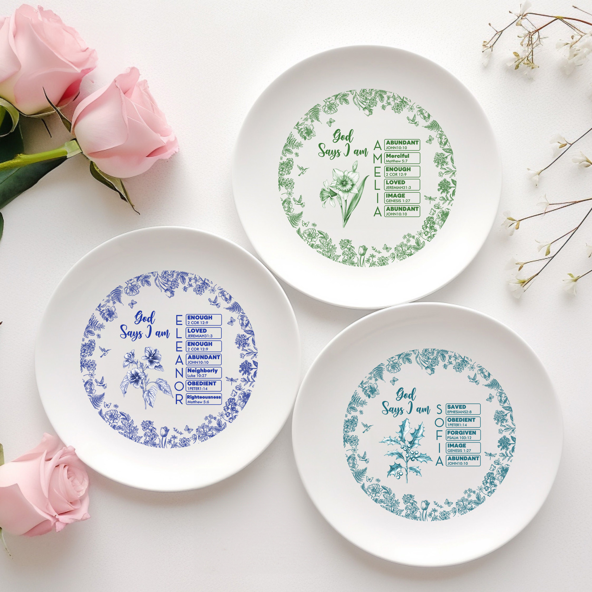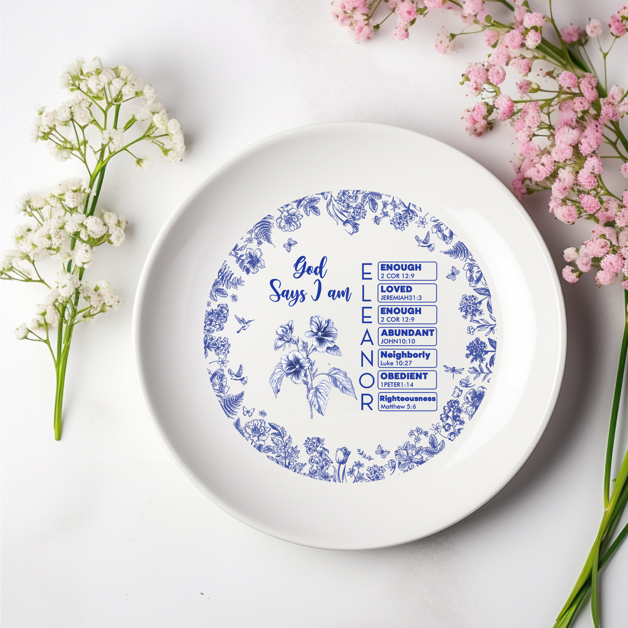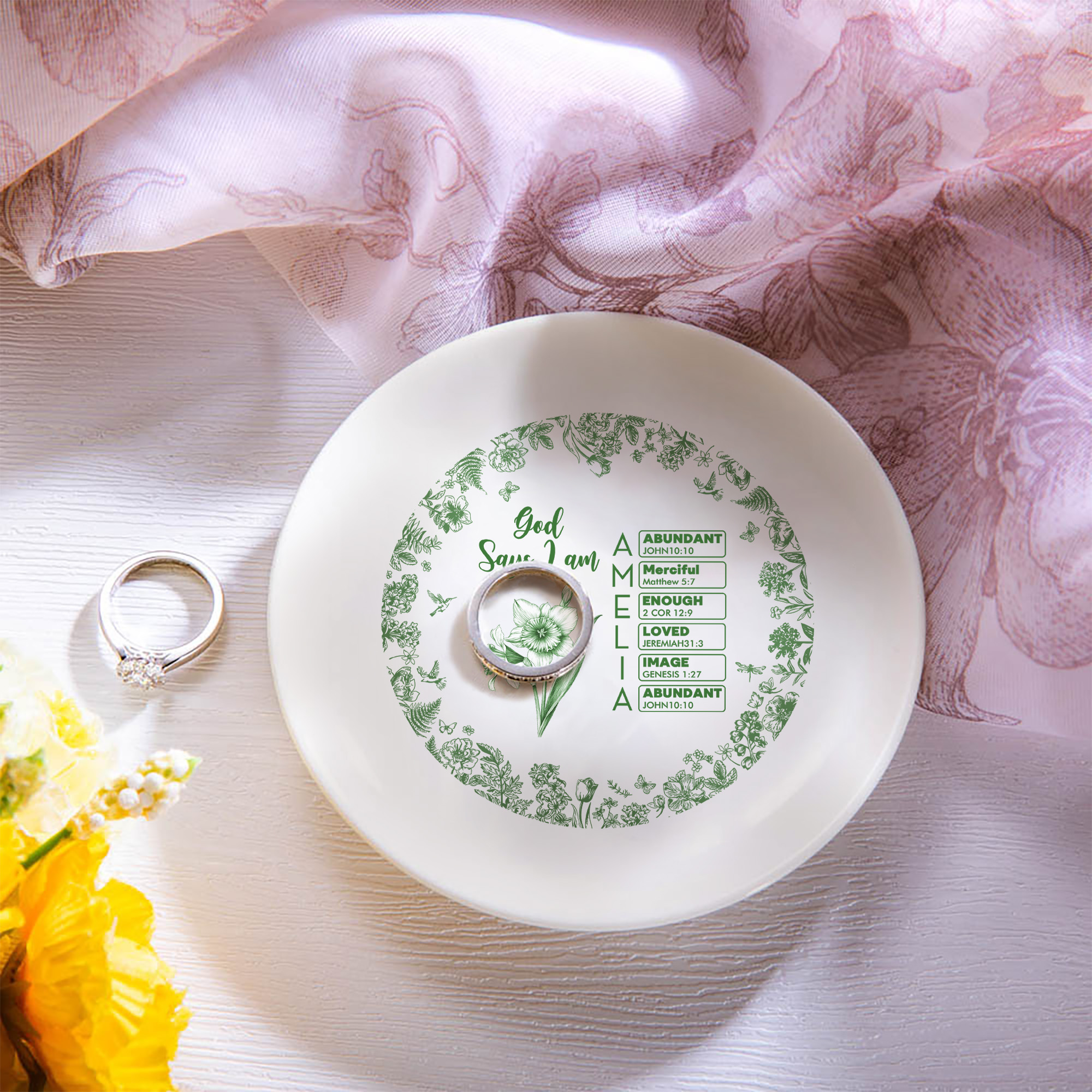 Style Custom Name Birth Flower Toile De Jouy God Says I Am Bible Verses Jewelry Dish